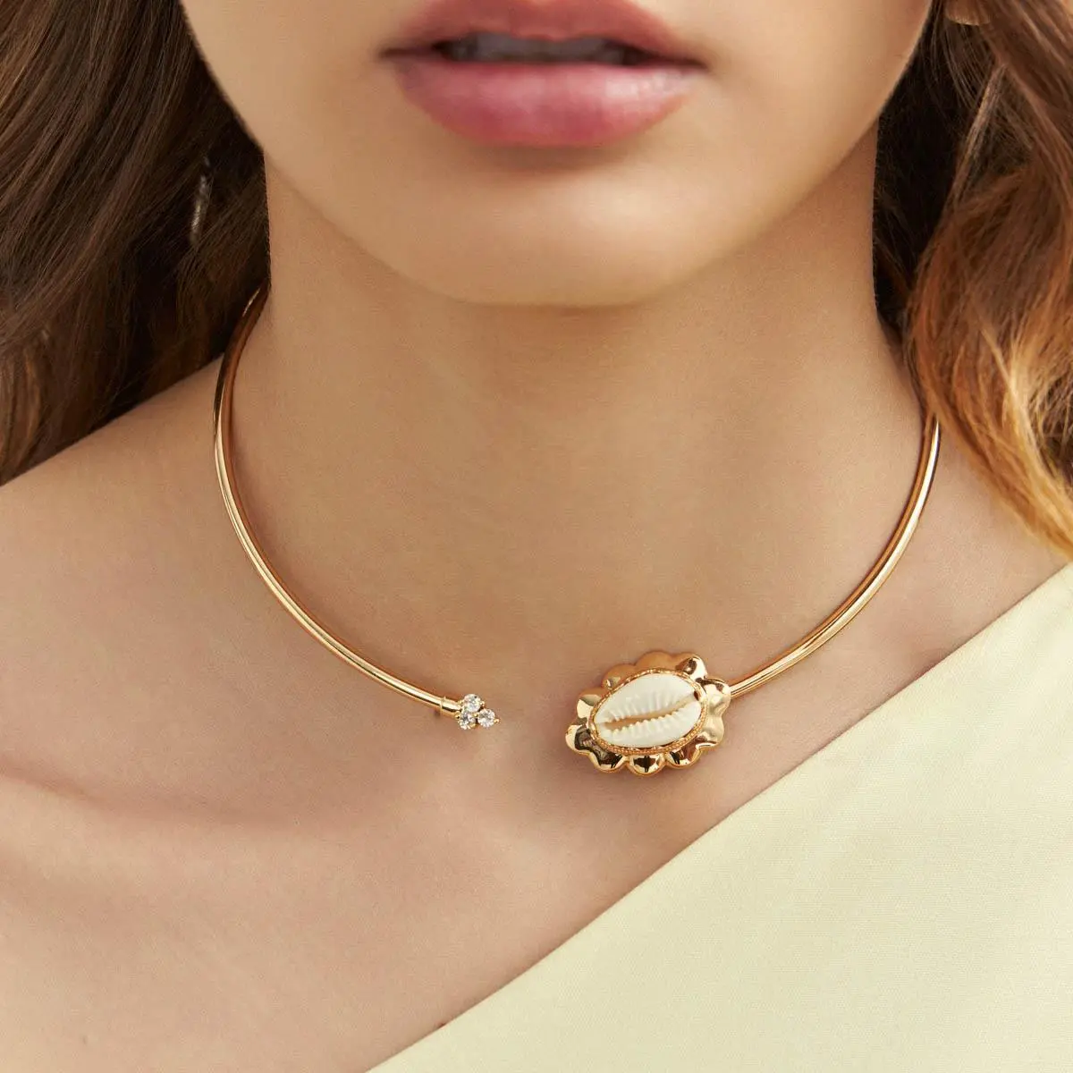 Aro Búzios, confeccionado em Banho de Ouro Amarelo, com detalhe em zircônia.