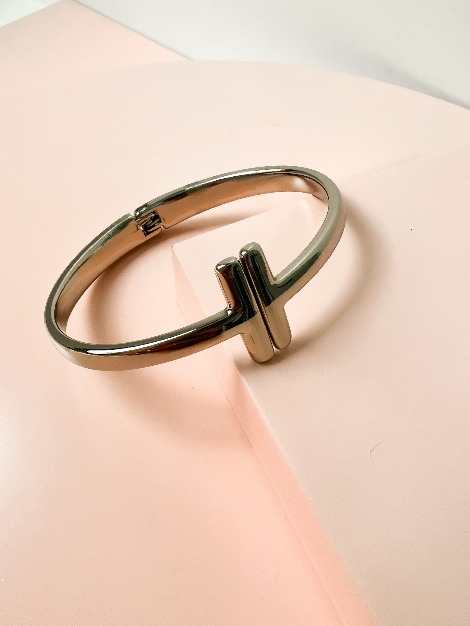 Bracelete Liso Detalhado confeccionado em Banho de Ródio Branco.