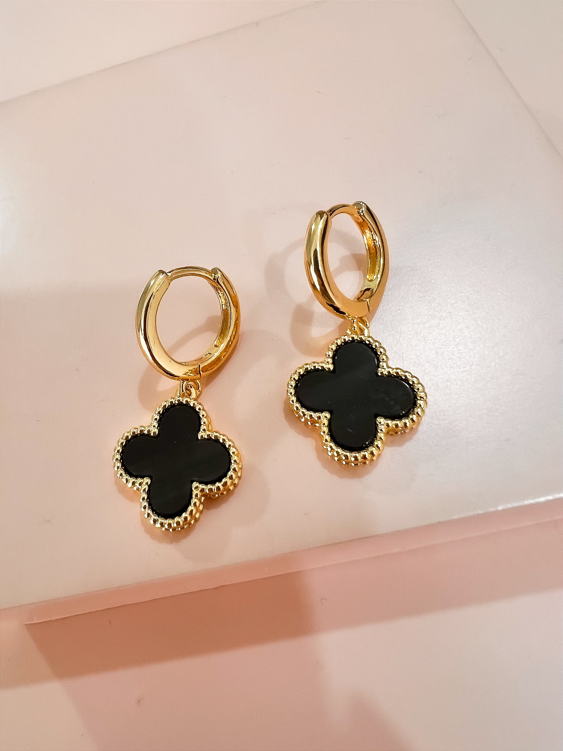 Brinco Argola Trevo Black, confeccionado em Banho de Ouro Amarelo.