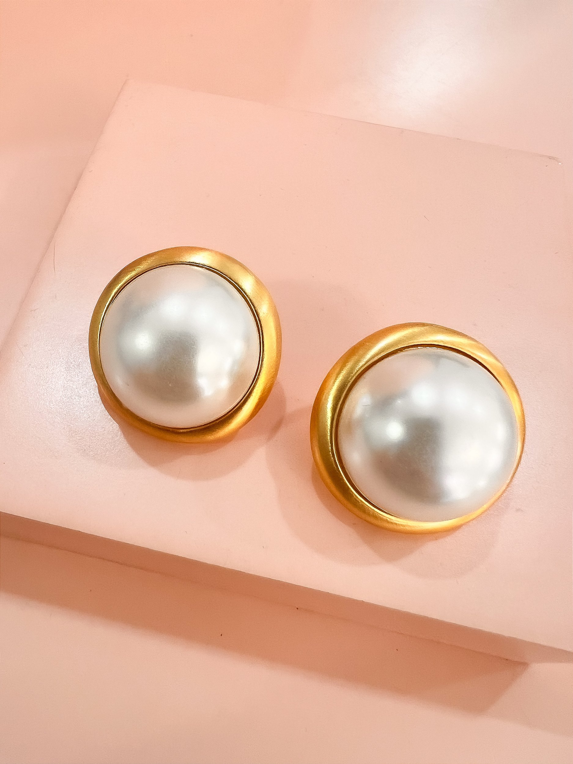 Brinco Botão Pérola, confeccionado em Banho de Ouro Amarelo.
