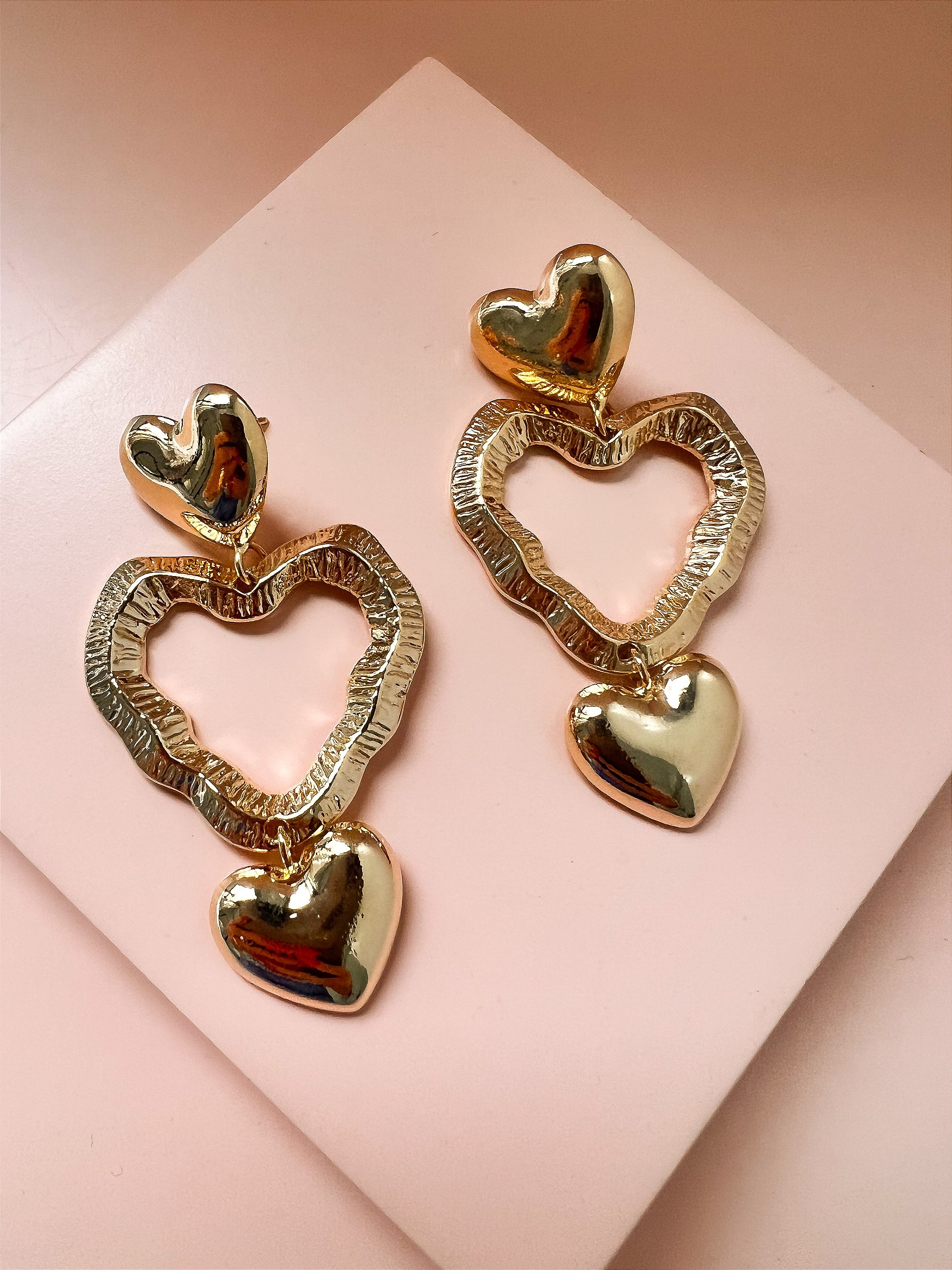 Brinco G Detalhado Coração Liso, confeccionado em Banho de Ouro Amarelo.