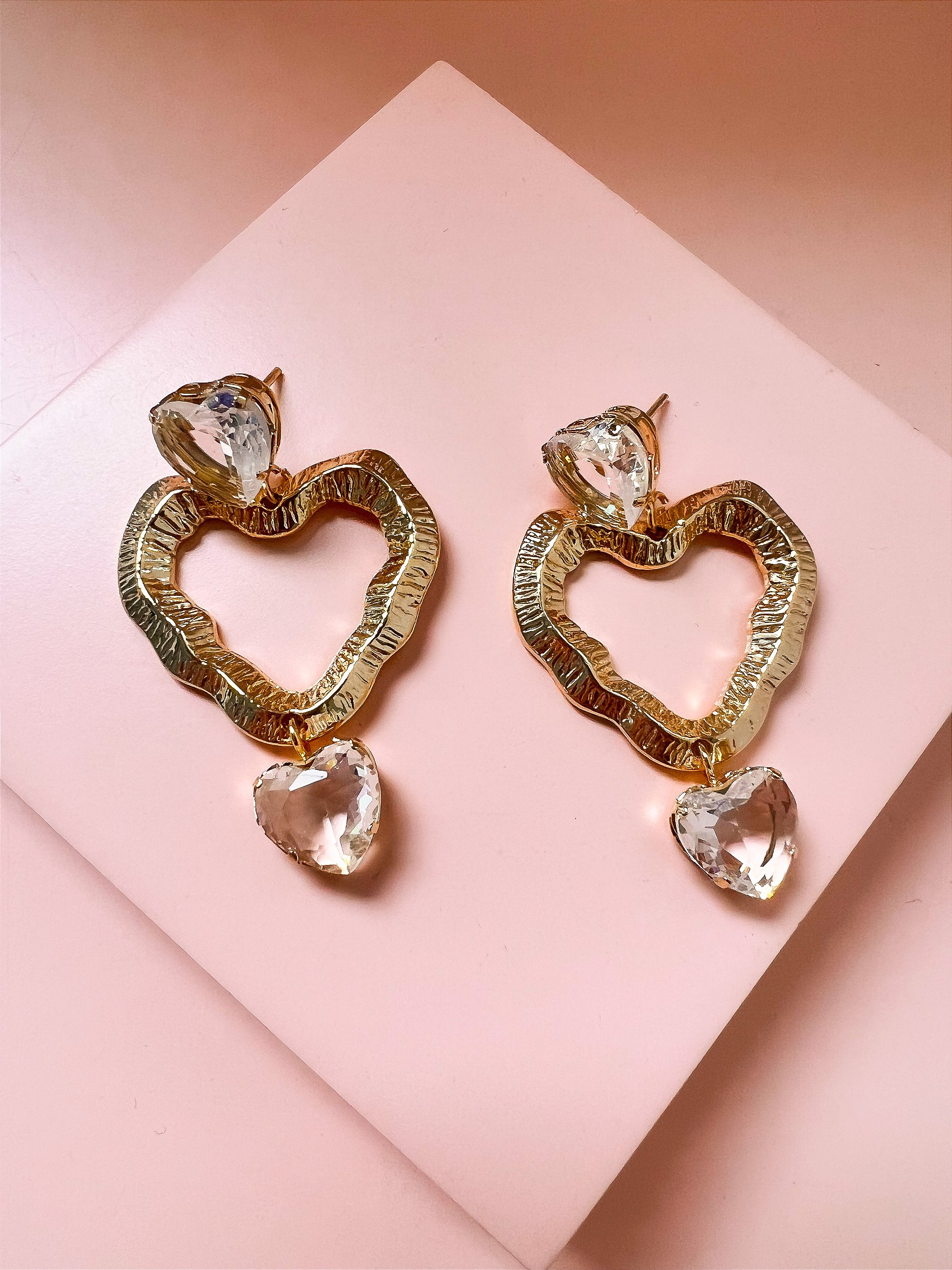 Brinco G Detalhado Coração Pedra, confeccionado em Banho de Ouro Amarelo.