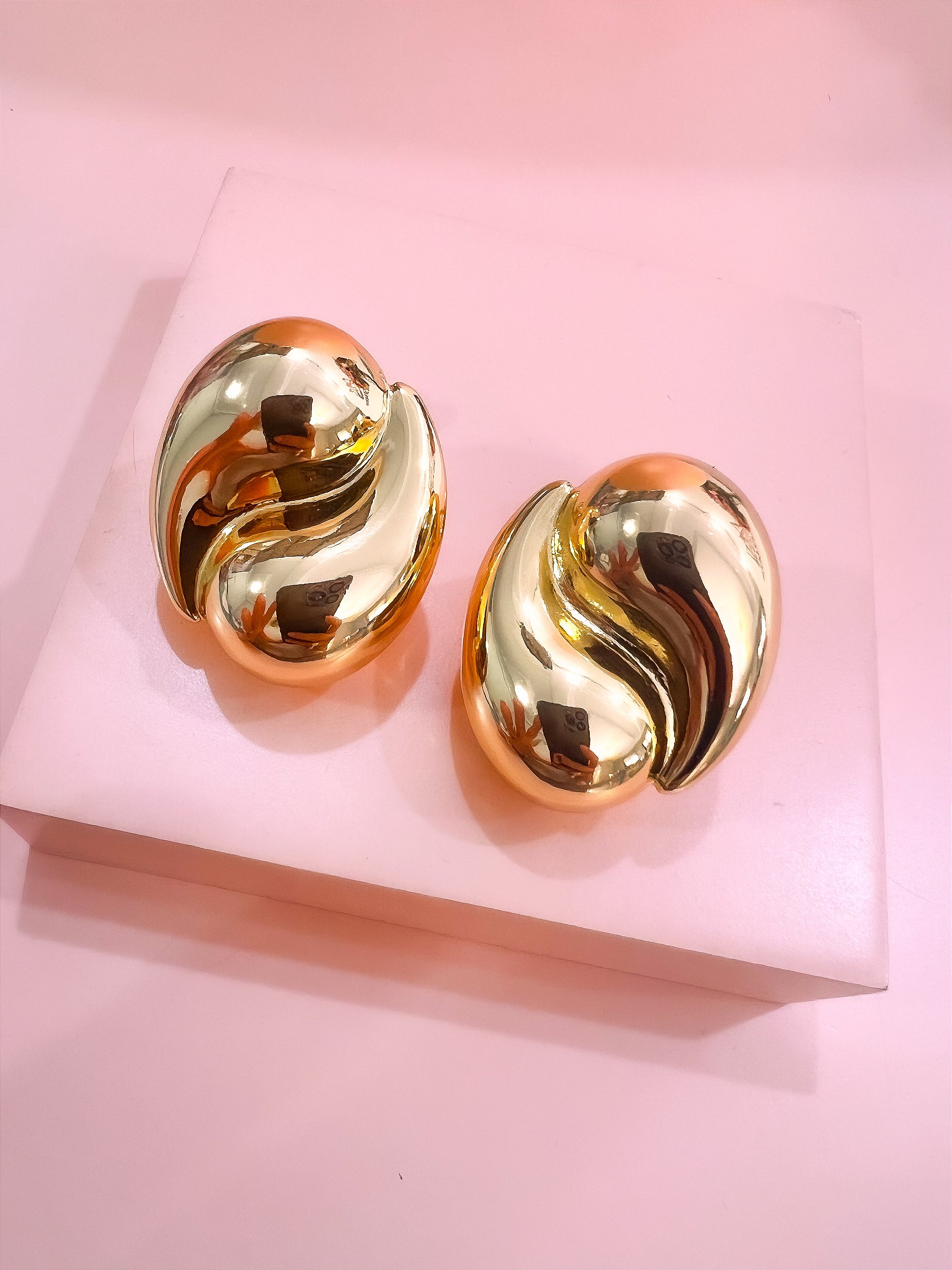 Brinco Bojudo Gotas Invertidas, confeccionado em Banho de Ouro Amarelo.