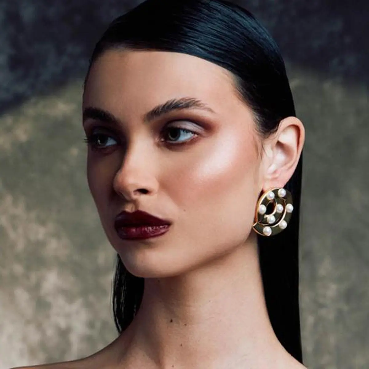 Brinco Maxi Pérola Cravada, confeccionado em Banho de Ouro Amarelo.