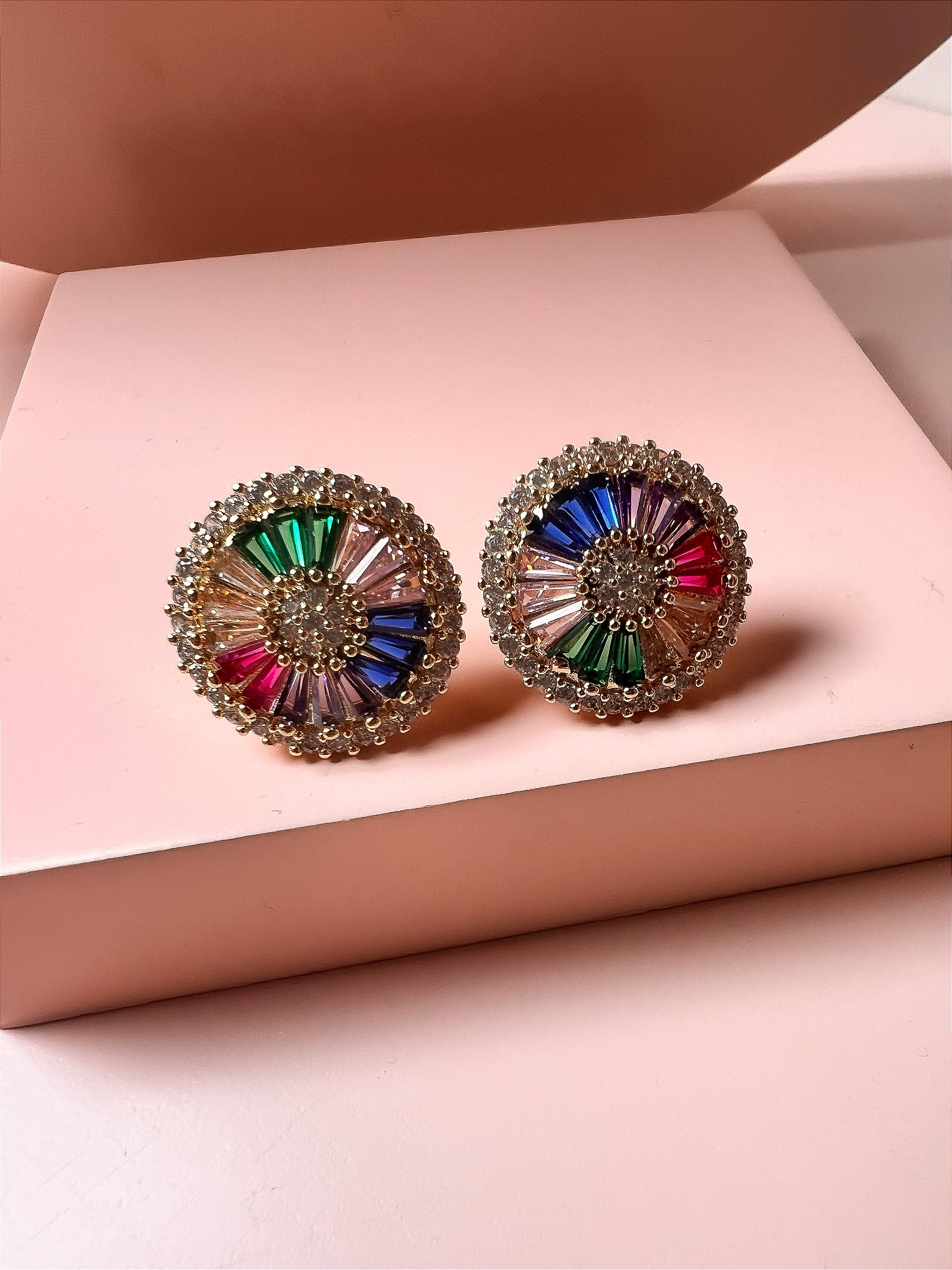 Brinco Pizza Cravejado Confeccionado em Banho de Ouro Amarelo.