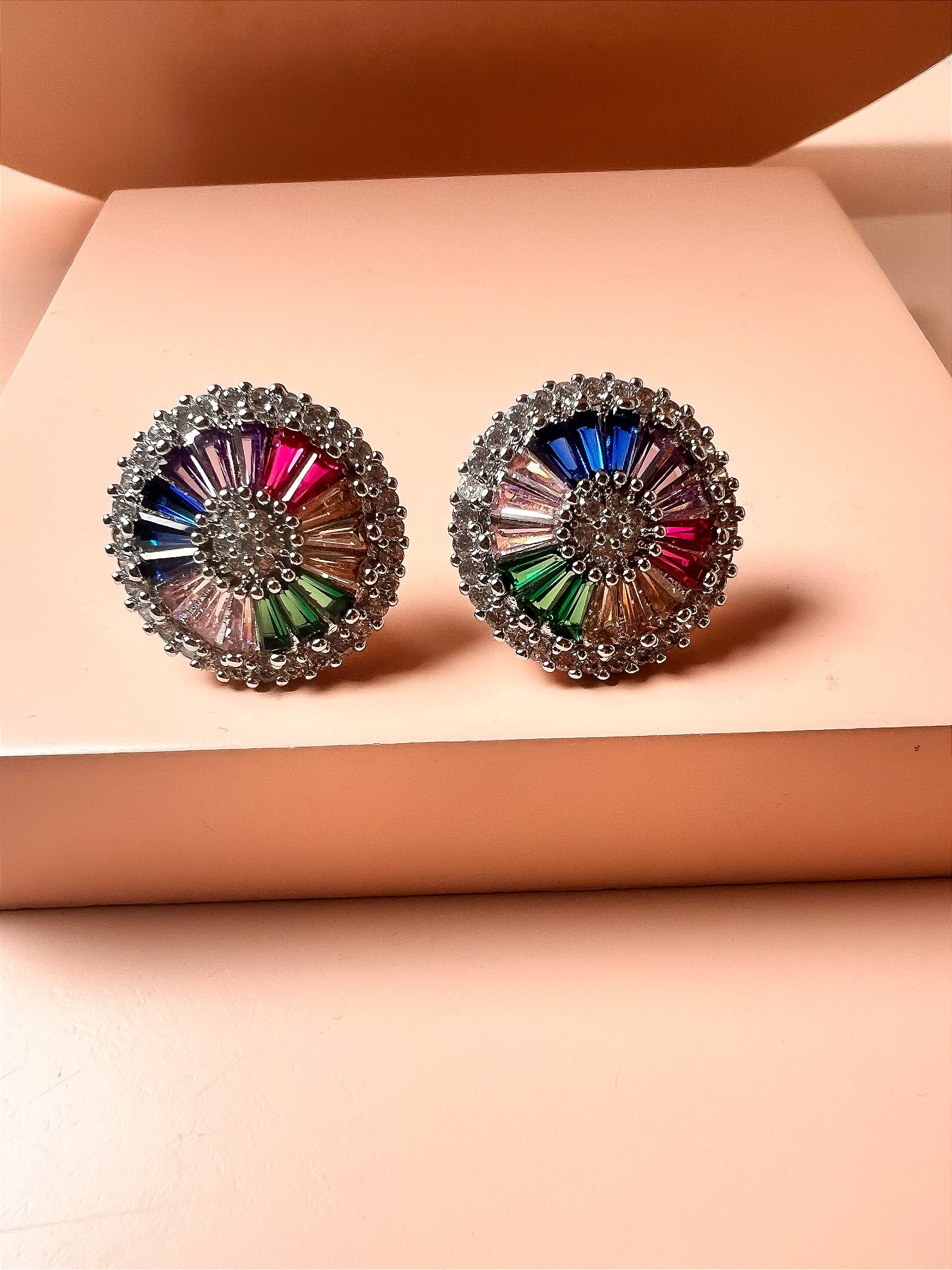 Brinco Pizza Cravejado Confeccionado em Banho de Ródio Branco.
