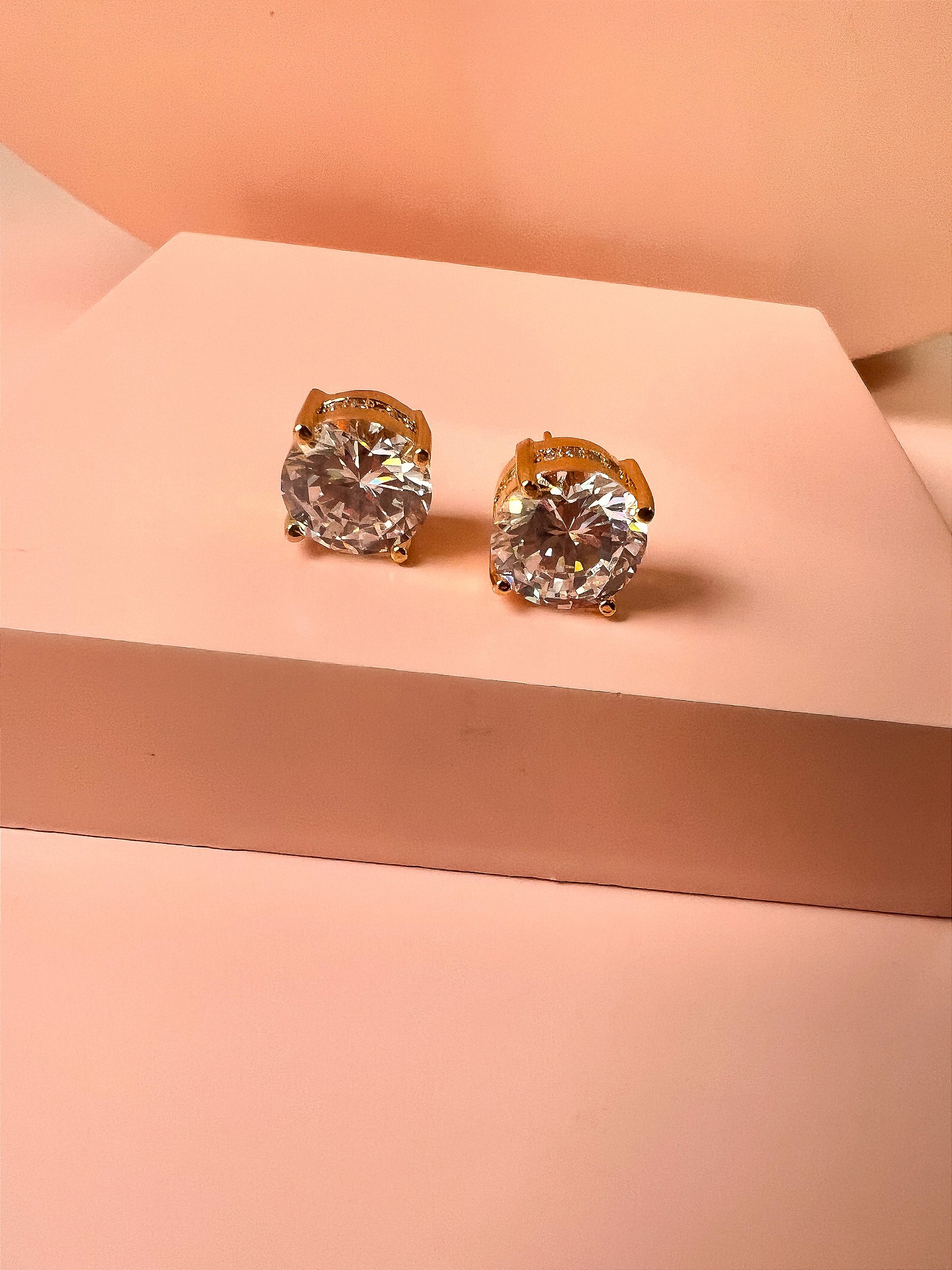 Brinco Ponto Luz G com detalhes laterais em micro cravação em zircônias brancas, confeccionado em Banho de Ouro Amarelo.