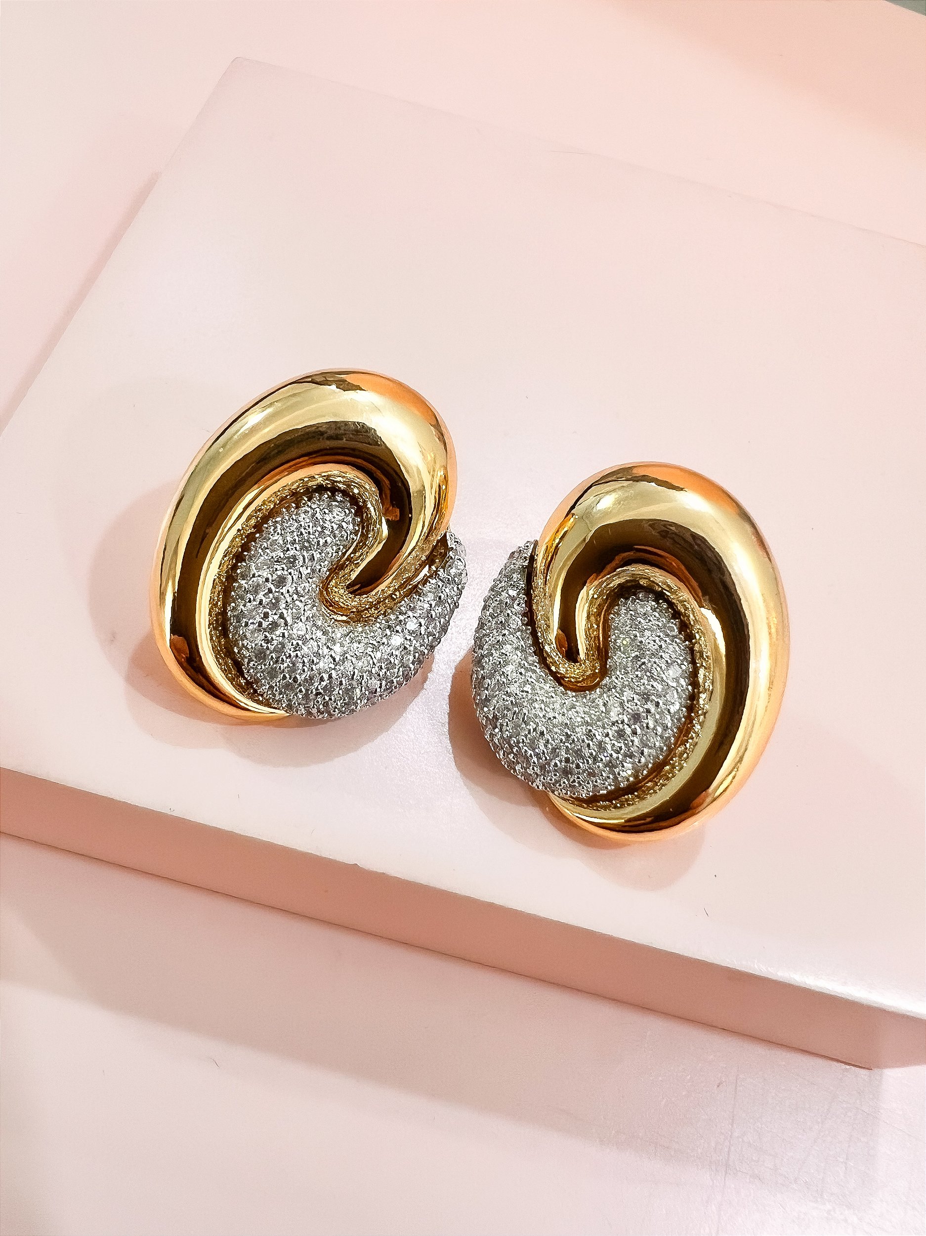 Brinco Redondo Luxo com Cravação, confeccionado em Banho de Ouro Amarelo.