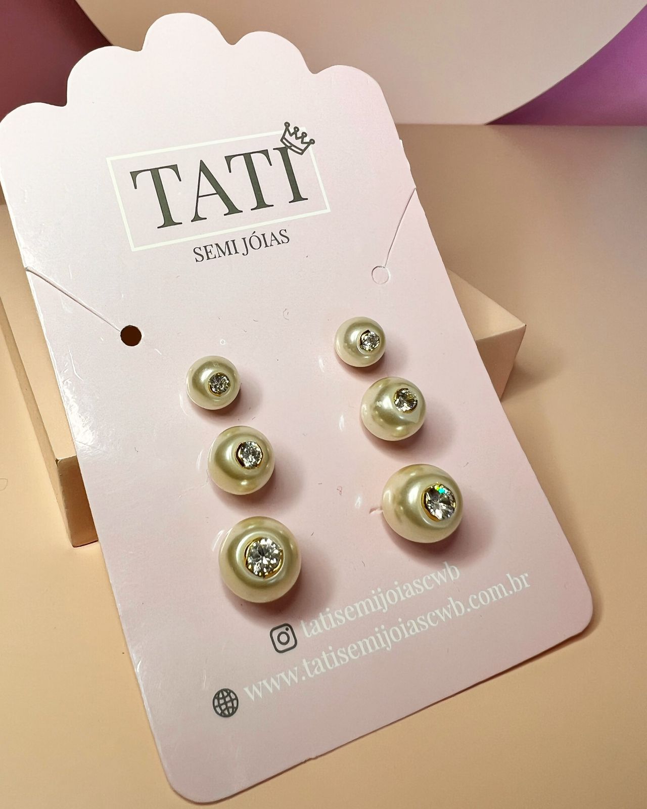 Brinco Trio Pérola Zirconias Confeccionado em Banho de Ouro Amarelo.Altura 1: 4mm
