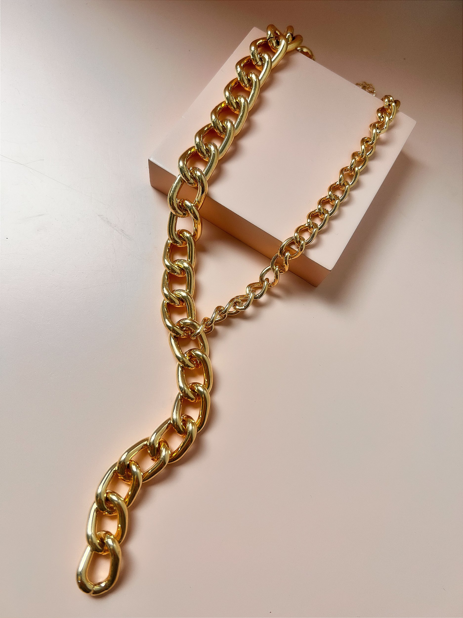 Colar Gravata 2 espessuras de Correntaria, confeccionado em Banho de Ouro Amarelo.