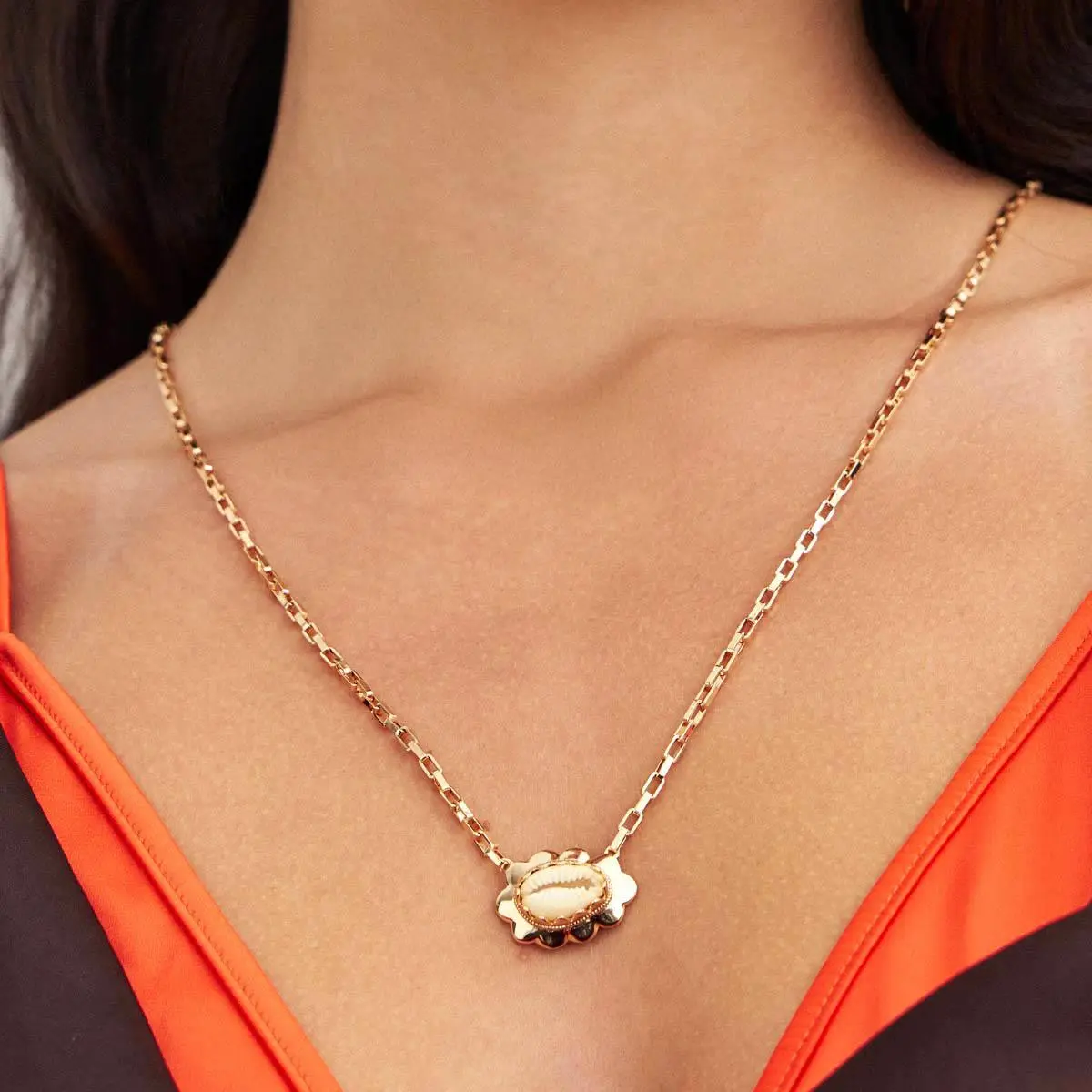 Colar Longo Búzios, confeccionado em Banho de Ouro Amarelo.