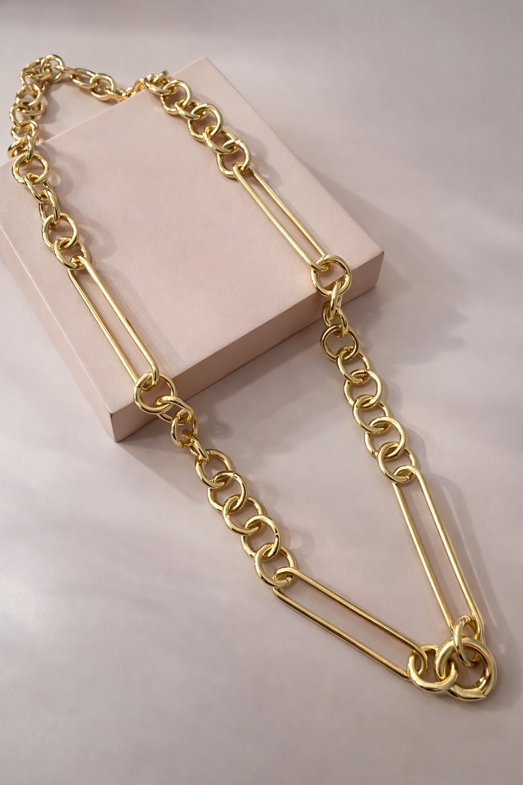 Correntaria Estilizada Elos Redondos e Retangulares, confeccionado em Banho de Ouro Amarelo.