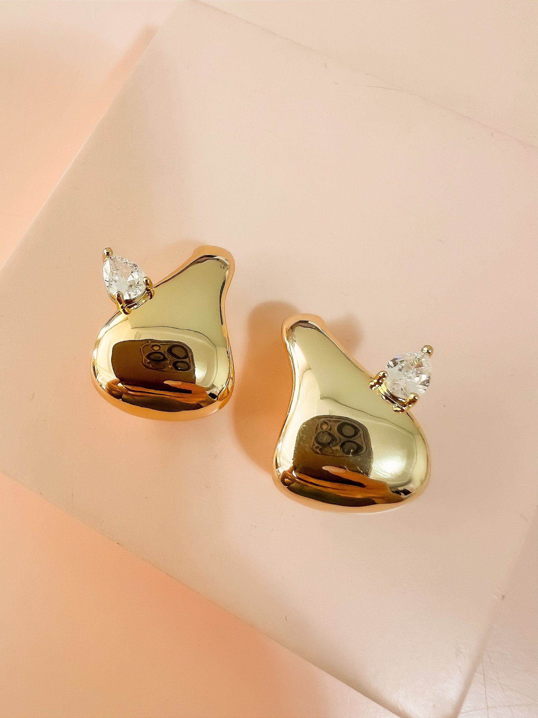 Ear Hook Liso com Pedra de Zircônia, confeccionado em Banho de Ouro Amarelo.