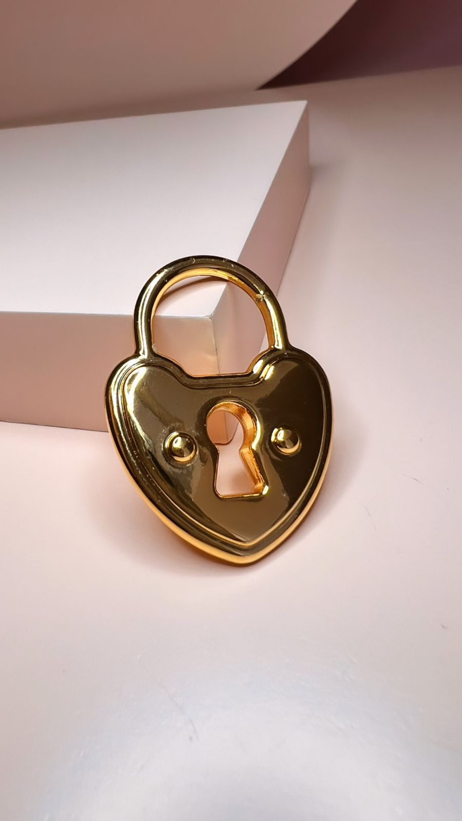 Pingente Cadeado, em formato coração, confeccionado em Banho de Ouro Amarelo.