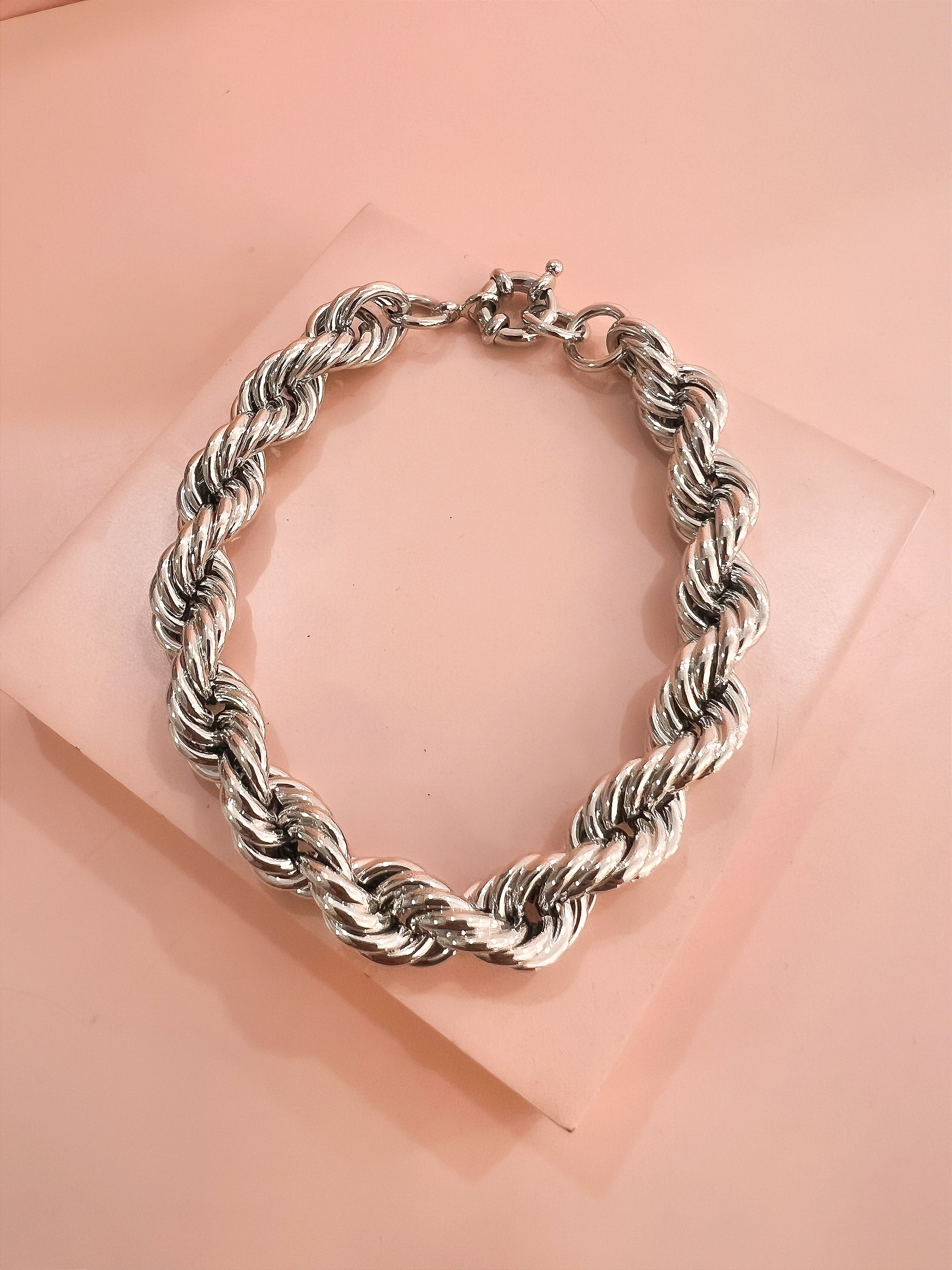 Pulseira Cordão Baiano G, confeccionado em Banho de Ródio Branco.